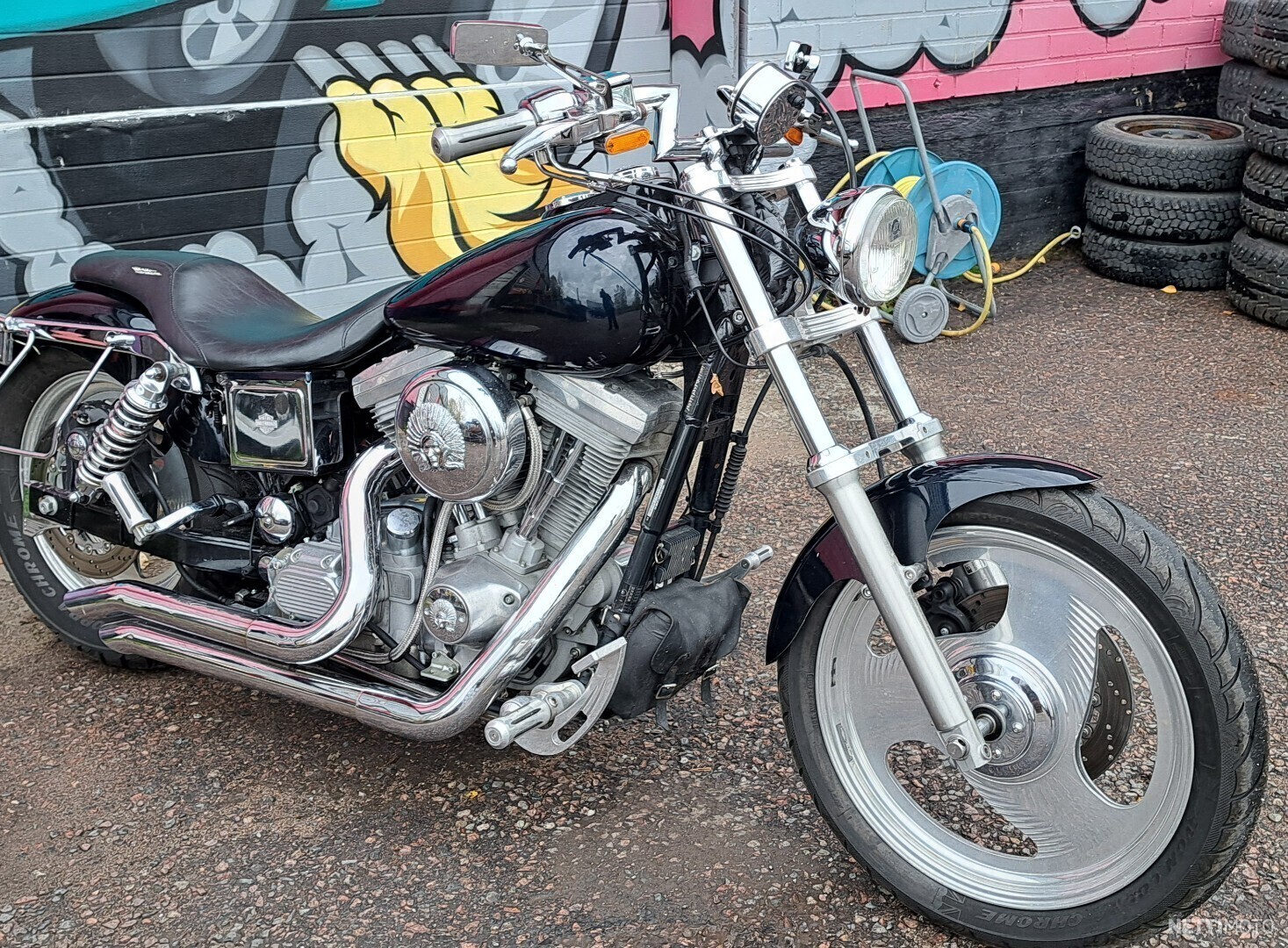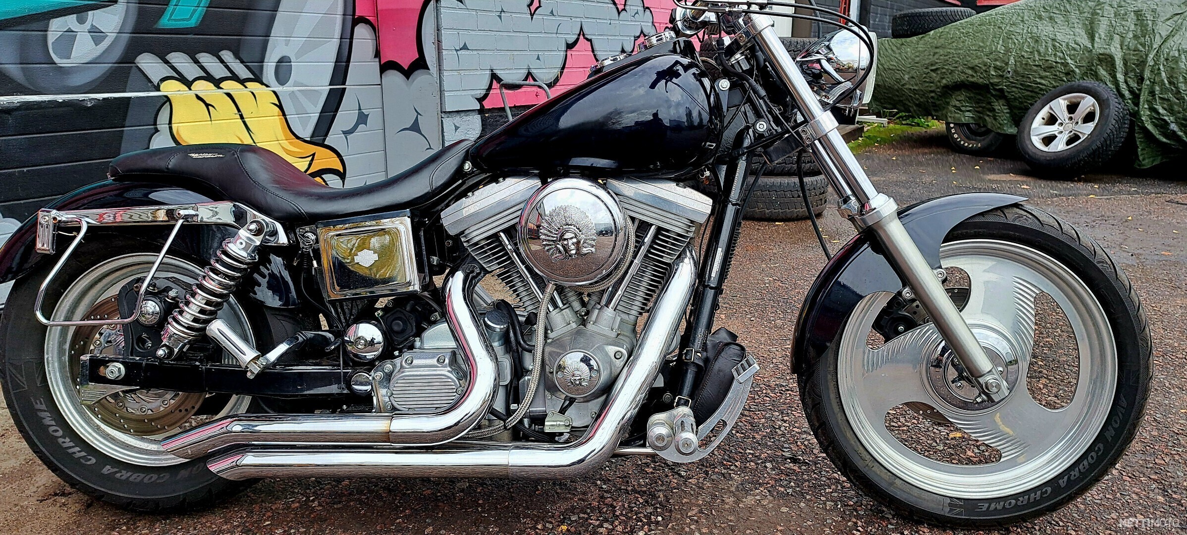Harley Davidson ´98 Dyna Super Glide. Suomipyörä! Vain 3 omistajaa. Evo 1340cc, 5 vaihteinen laatikko.Kytkin ja ensiöpuoli uusittu. Nikumin kaasari,OMP keula +kahvat ja tappisarja. Kireempi nokka. Samson Big Guns pakoputket. Yodella hienot äänet! Jesse James lokarit. Erikois alumiini vanteet. Hieno hyvin pidetty pyörä heti valmis ajoon.