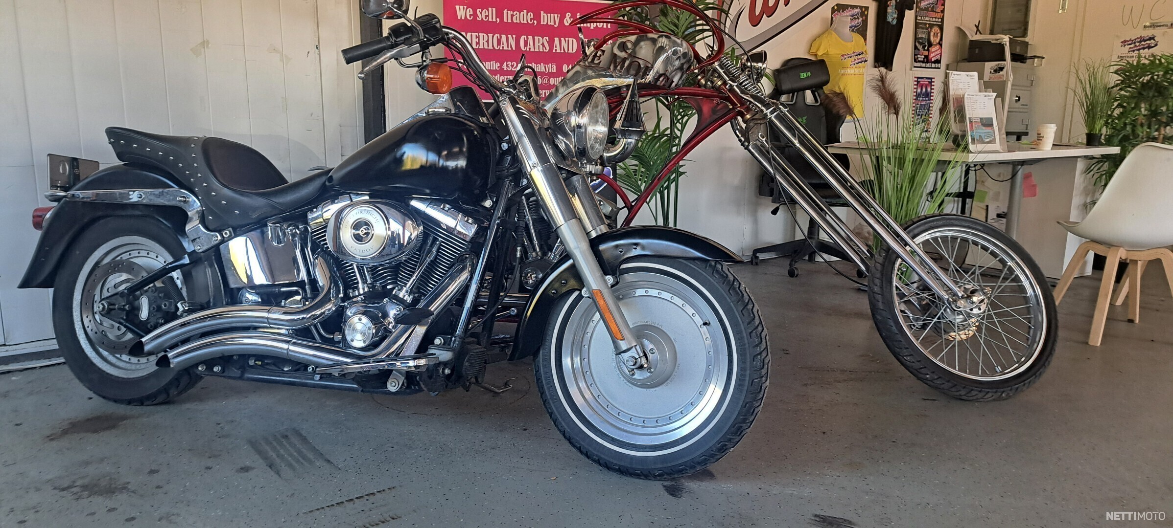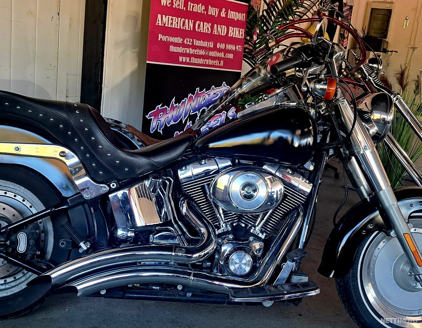 Harley Davidson 1500cc Fat Boy ,hyvin pidetty,kaikki huollot tehty,uudet renkaat,Vance´n Hines pakoputket,matkalaukut, kiiltävän musta,astinlaudat,tuplapeilit. Hyvä ja hieno matkapyörä.